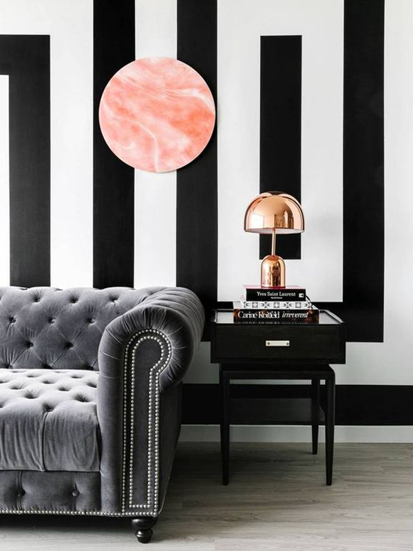 The best thing of all about a monochrome palette is that there’s always the option of including an unexpected splash of colour. An accent piece such as a bright orange vase or yellow cushion will have a truly dramatic effect. Rules, after all, are meant to be broken.