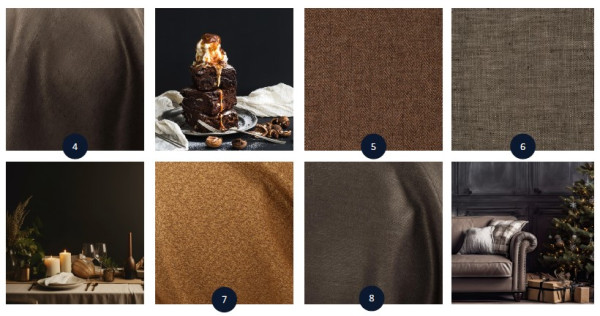 5: James Dunlop Taylor Spice, 6: James Dunlop Kyoto Truffle, 7: James Dunlop Alpine Clay, 8: James Dunlop Provence Pinecone