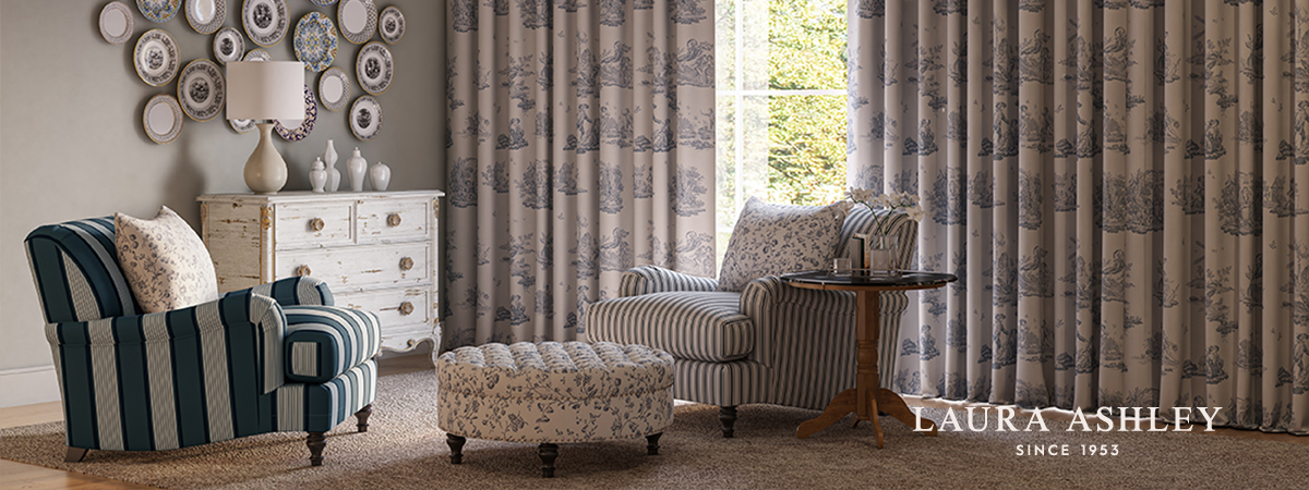 Depicting a classic country scene, the Toile design is taken from an antique print found in the Laura Ashley archive.